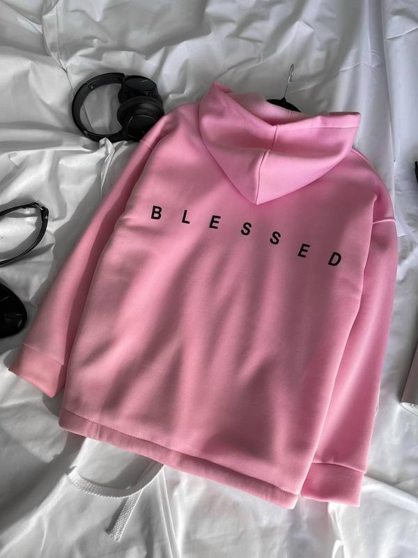 BESTSELLER 🔝🔝🔝 ‼️РЕАЛ ФОТО‼️ Получали в количестве✅ 🔸Худи BLESSED ▪️Модель: bb 1584 ▪️Ткань: турецкая трехнить на флисе ▪️Размер: 42-48 (oversize) ▪️Цвет: черный, меланж, белый, розовый Цена: 559 грн🥥 Супер качество по низкой цене🔥 💬WoW новинка💥 Стильный теплый худи оверсайз с трендовой надписью на спинке🔝 Регулирующая шнуровка по низу позволяет носить худи в удлиненном варианте и укороченным, затянув поясок. Глубокий капюшон, спущенная линия плеча, манжеты из основной ткани. Качественная накатка. ЗАМІРИ ВИРОБУ: Длина 70 см ОГ 130 см Рукав от ворота 77 см