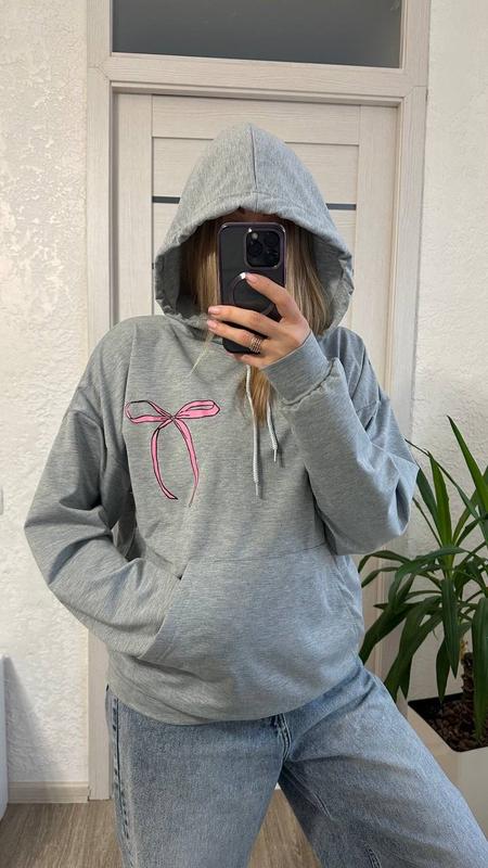 Фото реал Получали в количестве Мод 1116 Худи Ткань: двунитка + качественный накат Размеры:42-46,48-52 Цвет:серый и розовый Замеры 42-46 ОГ-118 см Длина рукава от шеи-78 см Длина кофты-68 см 48-52 ОГ-128 см Длина рукава от шеи-78 см Длина кофты-70 см