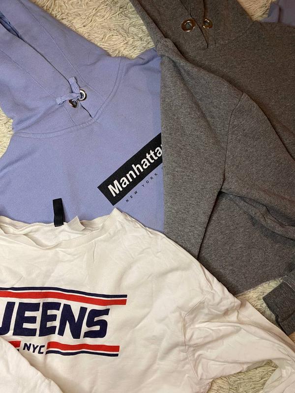 Укороченные худи Белый свитшот H&M размер s-m длина 30,плечи 50,рукав 50 Серое худи Atmospheres размер s-m Длина 43,плечи 50,грудь 49,рукав 56 Голубе худи new look размер s-m Длина 34,плечи 46,грудь 50,рукав 48 Все худи при 299 грн Отдельно по 100