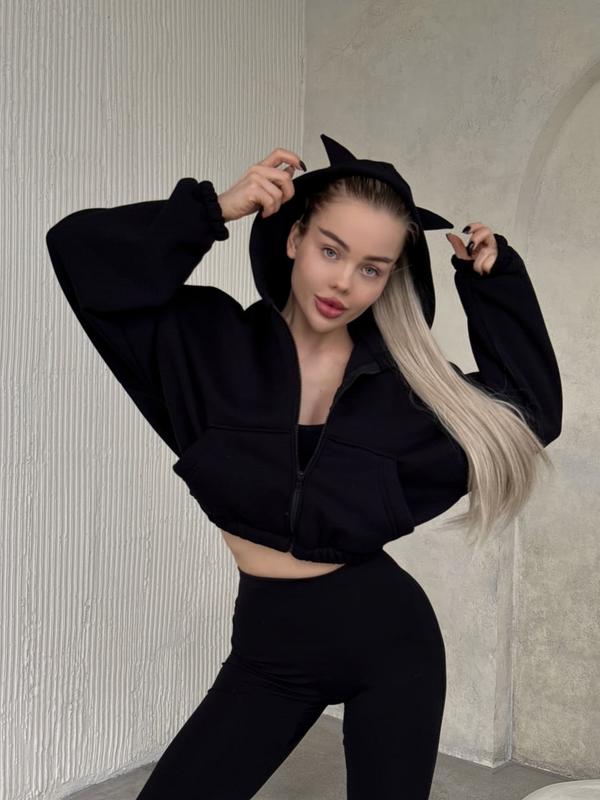 Худи Мод. 703 Ткань: трехнить Турция пенье Размер: 42-46 Цвет: черный, графит Стильное худи на молнии. Приятная качественная ткань, не линяет и не кашлатится. Необычный дизайн с рожками на капюшоне создаст оригинальный образ. Замеры: ОГ 120 см Длина рукава от шии 72 см Длина по спинке 47 см