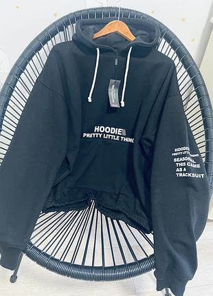 Стильный теплый худи с надписями от Prettylittlething на флисе с капюшоном. М’якесенька тканина. Размер M, подойдет и на XS-S