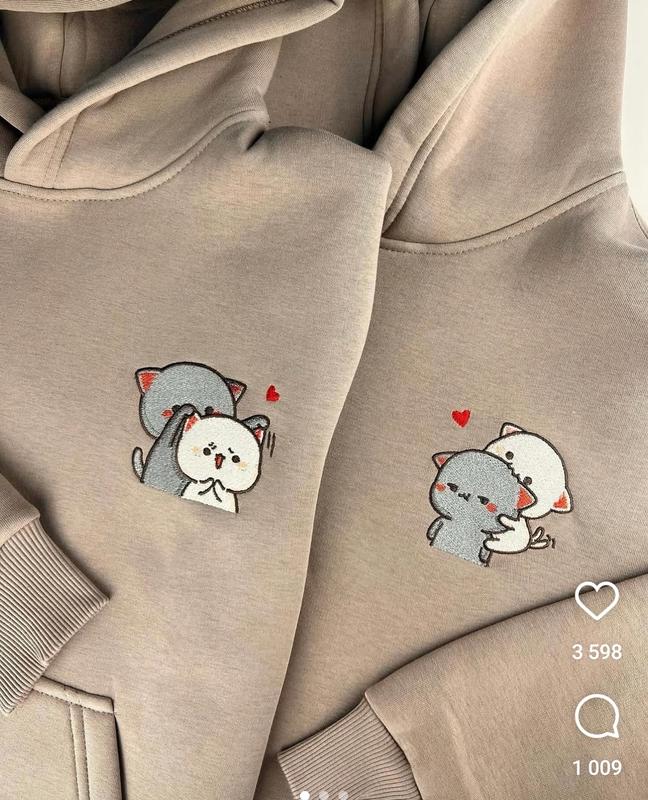 Размер женского худи S, мужской XL. Рисунок вышивка, качественный принт. Тканина двохнитка, не кошлатиться. Цена указана за пару.