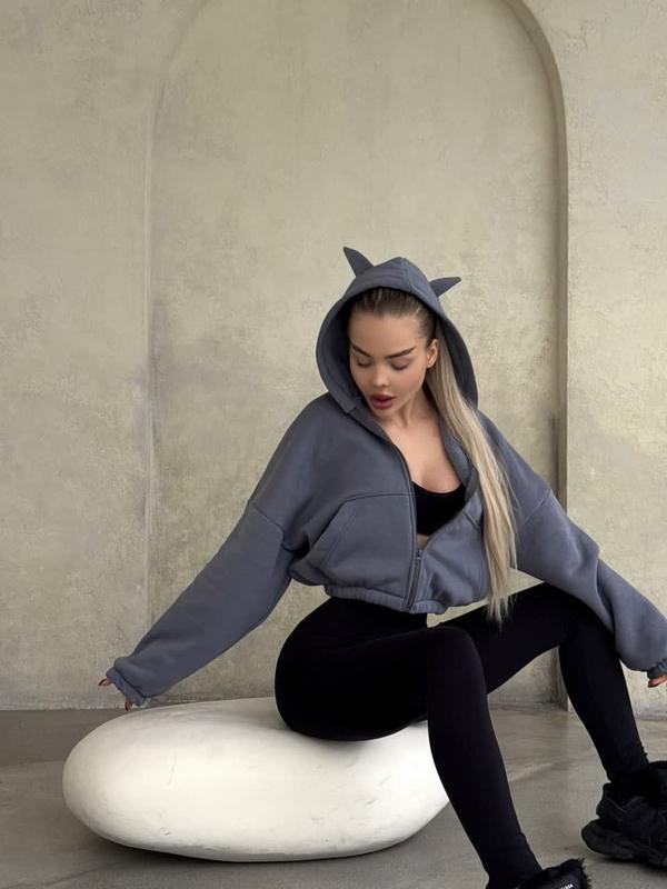 Стильное худи на молнии. Приятная качественная ткань, не линяет и не кашлатится. Необычный дизайн с рожками на капюшоне создаст оригинальный образ. Ткань: трехнить Турция пенье Цвет: черный, графит Размер: 42-46 ФОТО РЕАЛ Замеры: ОГ 120 см Длина рукава от шии 72 см Длина по спинке 47 см