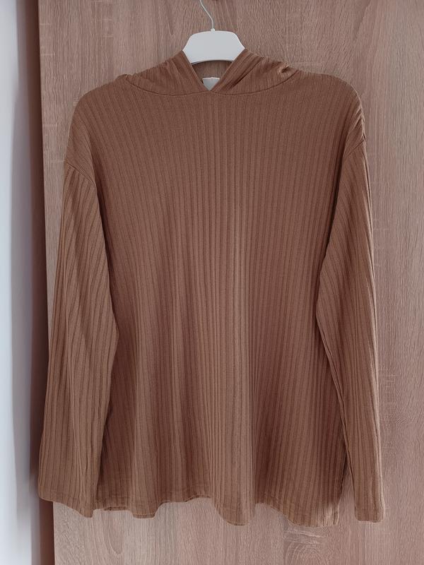 Тканина тонка В широкий рубчик Размер указанного евро XS, модель оверсайз Длина от плеча 65 см Рукав от горловины 70 см Линия плеча спущена Полу окружность груди в спокойном состоянии 54 см Полуширина изделия по низу 55 см, должна быть свободно По бокам разрезы высотой 16 см. 55% полиэстер 45% вискоза Производитель Камбоджа