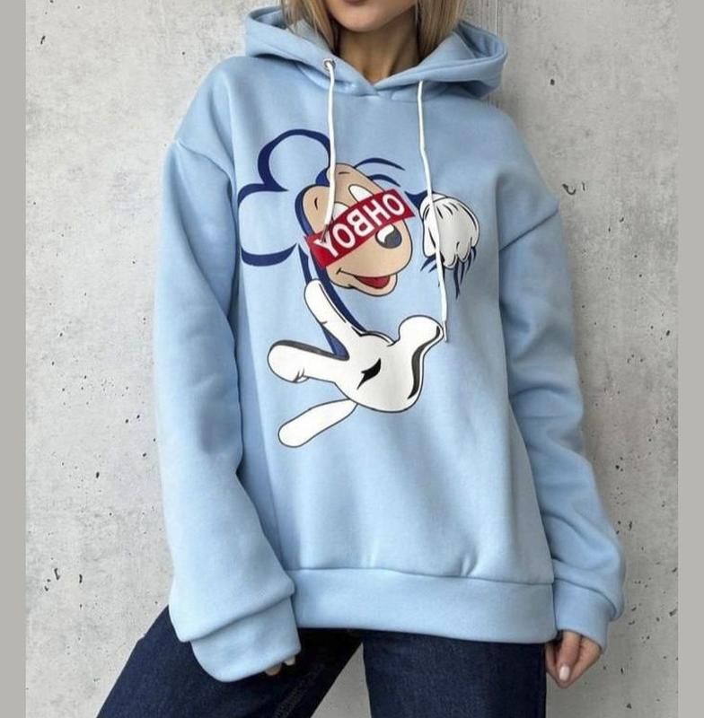 Худи женское на флисе 42-44(s-m) цвета голубой,черный,серый