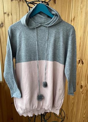 Великолепный худи с капюшоном, рукав 3/4, вискоза. Размер не указан, смотрит замеры длина переда 64, спинка 71, рукав 48, пог56