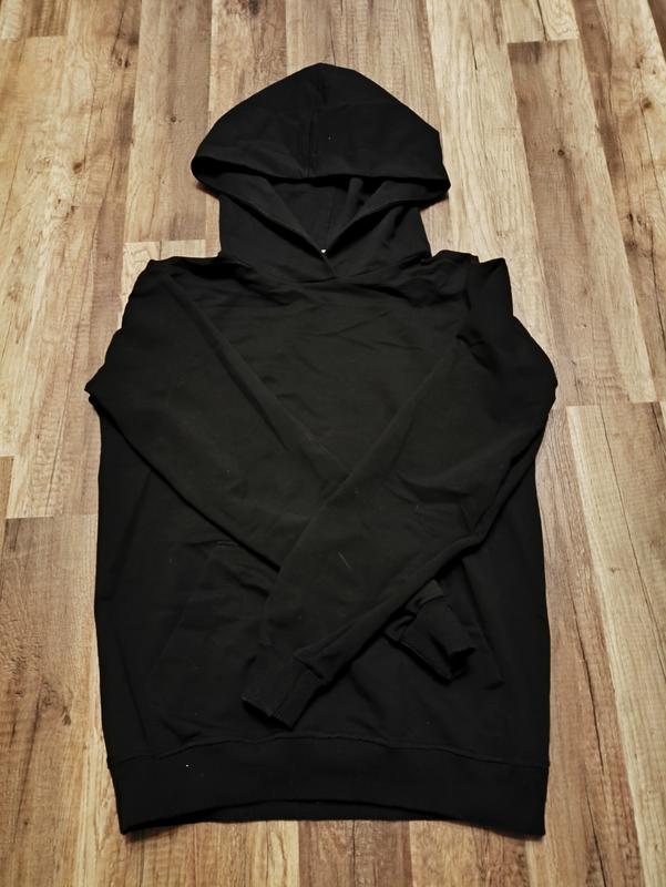Женский худи с карманом и капюшоном черного цвета (без утепления) Ткань приятная на ощупь и эластичная Размер S Длина 60см. Ширина 46см. Рукава 55см. (довжина) 17см. (ширина)