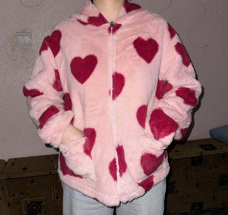 Рожеве плюшеве зіп-худі - стильний та зручний одяг для холодних днів. Ідеальний вибір для комфортного відпочинку вдома або на вулиці. Зроблено з якісного матеріалу, забезпечуючи тепло і затишок. Ваш найкращий вибір цього сезону!