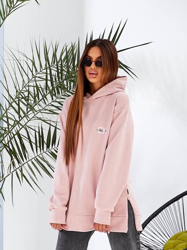 570 Кольори: салатовий , пудра Тканина: турецька триніть, петля ПЕНЬЄ оверсайз (42-46) Подовжений худі з подвійним глибоким каптуром , з боків потайна блискавка! Ідеально підійде під любий твій образ Заміри: ОГ- 116см Довжина вироба -76см