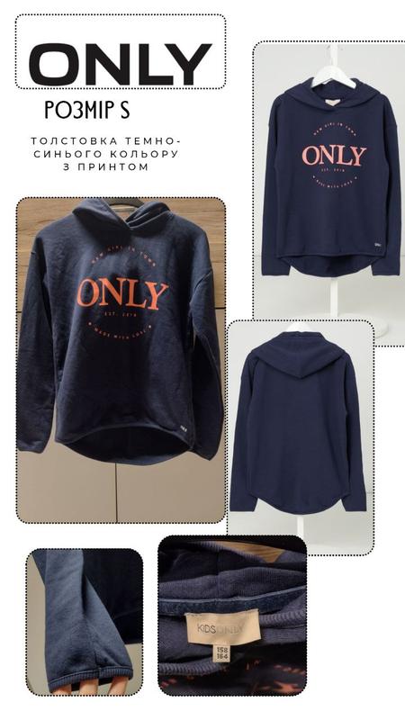 Толстовка темно синього кольору з принтом Only розмір S