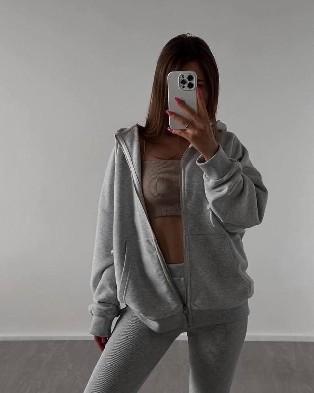 Арт: 877-194 объемное зип худи, идеальное на повседневный ▫️материал - двунитка. ▫️размер - 42-46. ▫️цвет - черный, серый меланж. ▫️имеет капюшон и большие карманы спереди