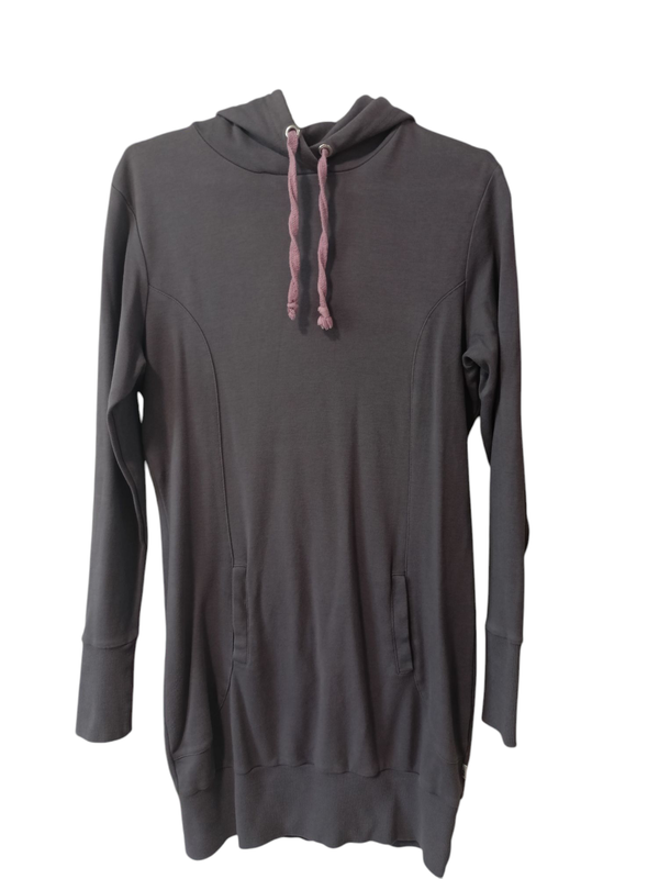 Худи с капюшоном, платье спортивного стиля. Размер 38 (S-М) на рост от 152-164 см. Фиолетового цвета 100% коттон Замеры: плечи - 40 см., полуобхват груди - 47 см. (тянется), полуобхват талии - 42 см., полулюхват бедра - 47 см., длина - 80 см., длина рукава от воротника - 71 см., длина от подмышки - 50 см.