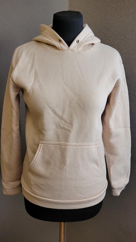 Просто теплая и уютная худи. Внутри мягкий флис. Подойдет на xs-s Цвет - персиковый или бежевый.