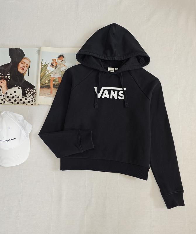 🌿черный худи Vans свободного кроя с манжетами, ткань 100% коттон Размер:XS Замеры:ПОГ 52 см, длина 50 см, рукав от горловины 67 см