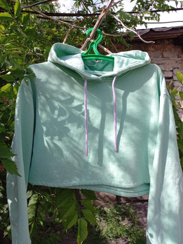 Худи.топ. легкая утепление. сзади имеет капюшон. цвет красивый. худи - топ оверсайз. по бирке - М. рукав на манжетах. пог - 6о см. длина - 37 см. рукав от шеи - 66 см.