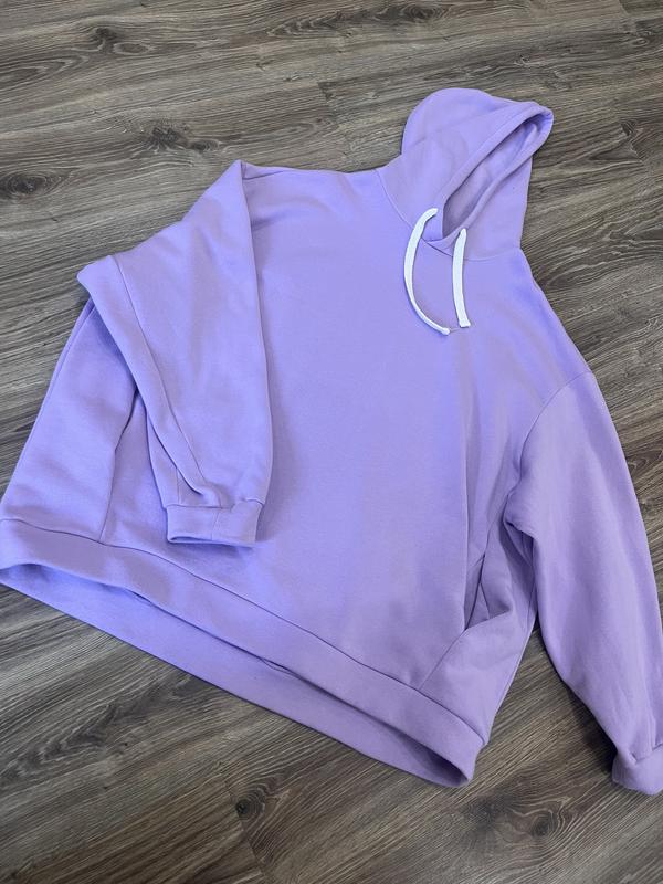 Фіолетове худі oversize на флісі. Підходить на xxl/xxxl Довжина по спині - 82 см Довжина рукава - 68 см Груди, талія, бедра - до 159 см. Обʼємний фасон.