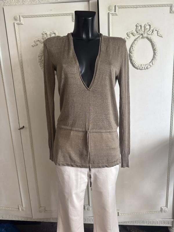 Якісне літнє худі бежевого кольору від Theory. ППо лінії бедра-кулі ска, два розрізи по боках. Дуже приємне до тіла. Розмір по бірці-2. Заміри: довжина-70 см, ПОГ-42 см, ПОБ-42 см, рукав-62 см. Стан ідеальний, лише є незначне поверхневе забруднення.