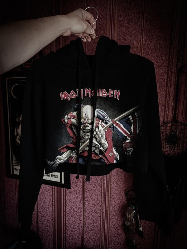 Представляю вашій увазі офігезну кроп кофту Iron Maiden, офіційний мерч. Стан нової речі, розмір "М" але ближчий до "S". За додатковими фотографіями, замірами та запитаннями прошу звертатись в приватні повідомлення.