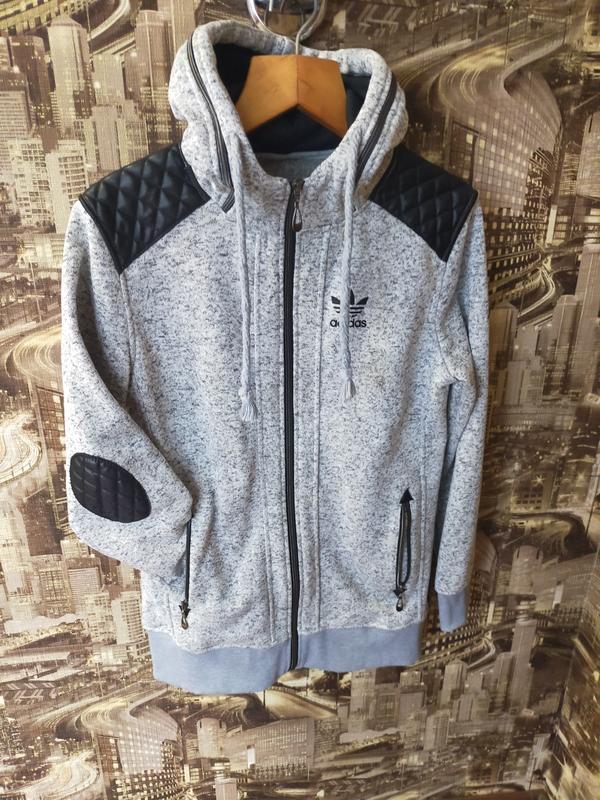 Утепленное худи в идеальном состоянии, красивого серого цвета со вставками черного, капюшон на подкладке. Замеры: длина 76 см, подмышками 53 см, рукав 64, плечи 44 см