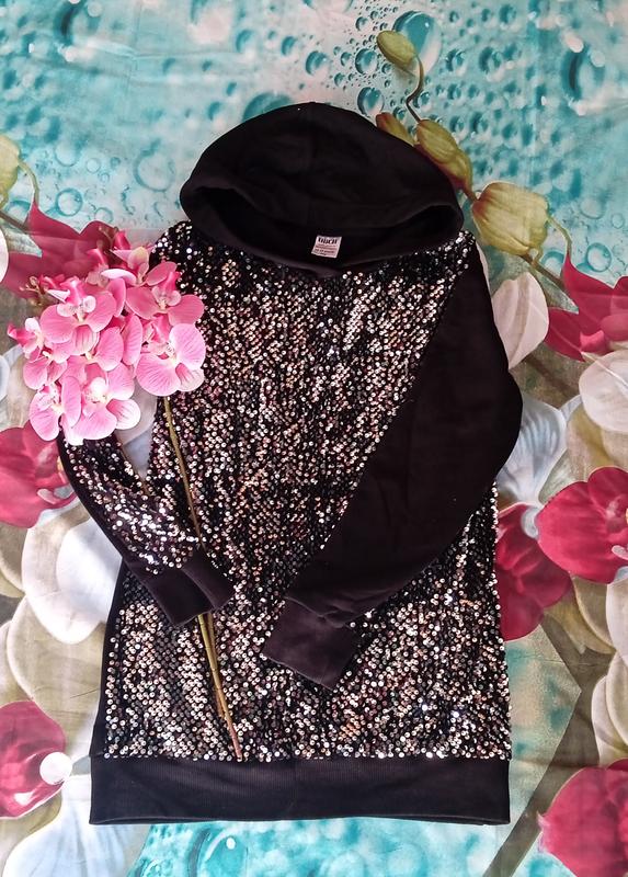 Худи с пайетками, состояние идеальное без пятен и катышек. Тянется. ПОГ (подмышки) - 48 см Длина - 68 см Рукав - 58 см *можная доставка вкрпоштой