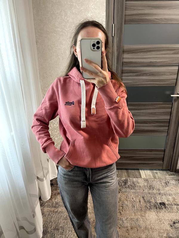 Розовое худи от superdry. Размер м, можно и на s будет оверсайс, капюшон на шнурках удобный передний карман, мягкий и теплый материал, приятный к телу. Брендовые вышивки на груди и рукаве. Состояние красивое, на флисе.