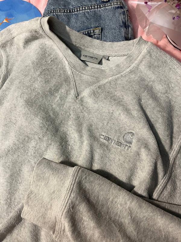 Carhartt худі сірого кольору, мʼяке, розмір с-с стан непоганий, є невеличкий ньюасн, вказаний на фото
