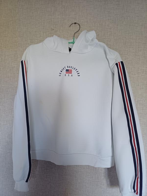 красивый худи, длина 52, рукав от горла 67, ширина 55, есть пятно на фото видно, цена минимальная