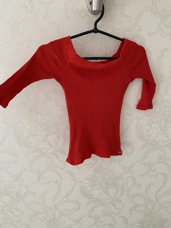 Жіноча кофта топ Колір червоний По бірці xss але піде розмір xs s Дефектів немає Стан 10/10 Рукав 3/4 В рубчік