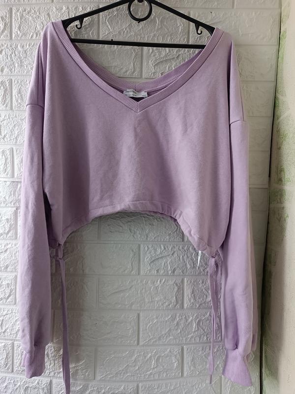 очень красивое женское укороченное худи, светло сиреневого цвета, длина 42, полуобхват груди 57, плечи спущены 64,рукав 54.