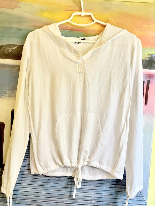 Натуральний склад, легка та дихаюча кофта худі сорочка біла в спортивному стилі. Аутлет! Білосніжна Довжина 60 Плечі 44 Пог 53 Рукав 61