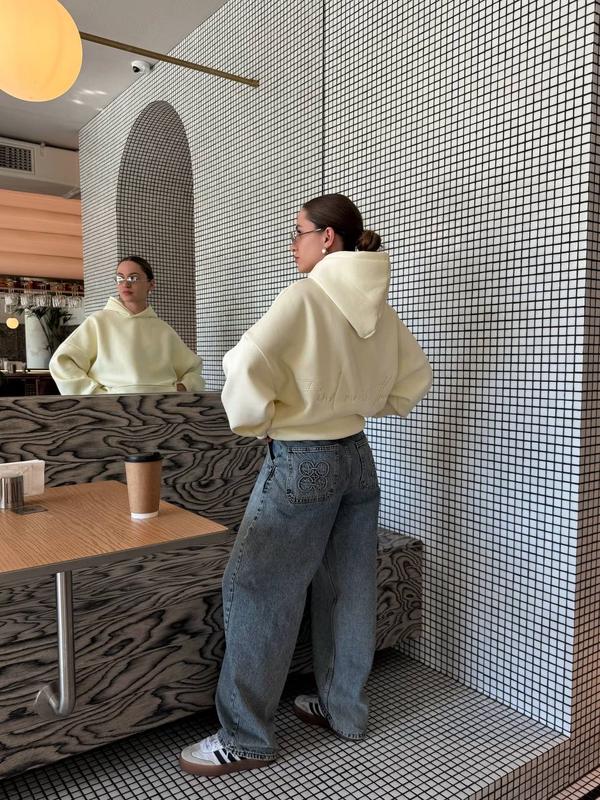НОВИНКА💙💙 🖇Худі 💎Мод: 884 🪡Тканина: турецька трьохнитка на флісі ПЕНЬЄ (мʼяка, не кашлатиться, не втрачає колір) манжети з рібани Кашкорсе. Надпис вишито нитками🪡 📏Розмір: 42-48 🌈Колір: рожевий, блакитний, масло Заміри : ОГ - 125 см Довжина по спинці - 69 см Довжина рукава від горловини - 74