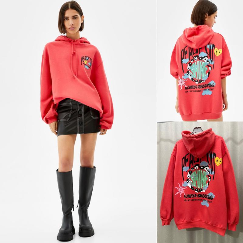 9️⃣5️⃣0️⃣💳 Від берш З нової колекції юна флісі З цікавим лого на спині Сідає вільно/ oversize На флісі/ котон Розмір пише S може бути і М/Л Довжина 72 пог 65 пот 63 Плечі спущені