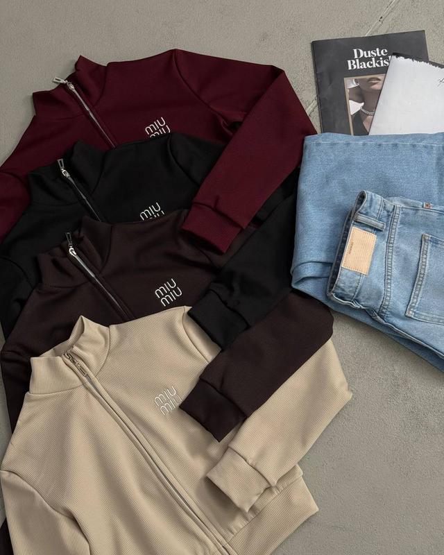 ✨ Базові кофти на блискавці Miu Miu ✨ Мод 046 Розміри: 40-42, 44-46 Тканина - рубчик з начесом (дуже теплі та приємні на дотик ) Кольори : беж, чорний , бургунді, шоколад Ідеальний вибір для стильних та комфортних образів. • Актуальний крій з коміром-стійкою • Якісна вишивка логотипу 🧵 • Тканина з рубчиком, всередині м’який теплий фліс 🤍 • Легко поєднуються з джинсами, шта