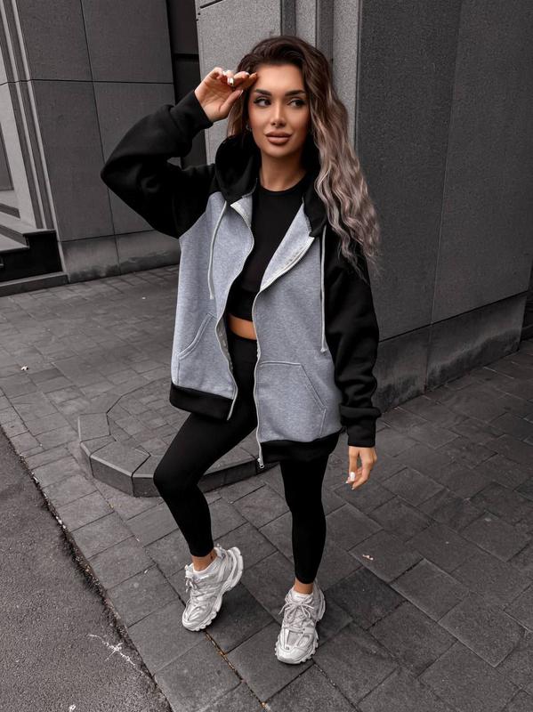 Худі на блискавці арт. pas. 5009 Тканина: тринитка на флісі Кольори: сірий з чорним, білий з чорним Розміри: 42-44, 46-48, 48-50 Відмінна якість Ціна 850 грн