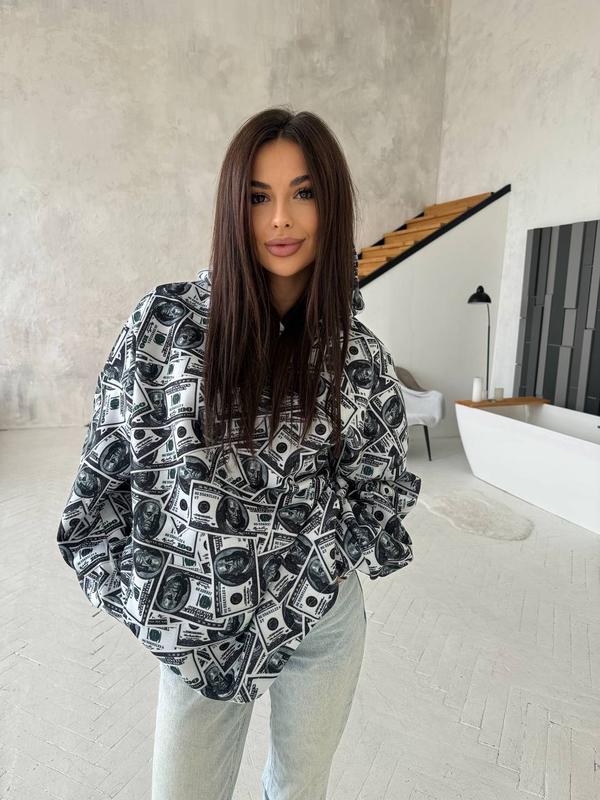 Перед подтверждением заказа советуем уточнить наличие товара, размера, цвета и способ доставки. Возвращение возможно только при осмотре на поште❕ Выполняя заказ, вы согласовываете с условиями нашего магазина. Делайте заказ обдуманно 🙏🏻 Мы всегда открыты для ваших вопросов и готовы помочь 💗 Новинка 🔥 Оверсайз худи в трендовом принте 💵 ▪️размер: one size ▪️цвет: принт долларов ▪️ткань: трехнитка на флисе ▪️модель: 202