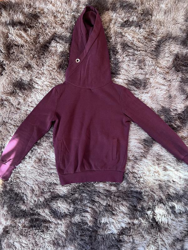 Стильна бордова худі з оригінальним асиметричним капюшоном. Модель має зручні кишені та еластичні манжети, що забезпечують комфорт і гарну посадку. Ідеальний варіант для щоденного використання – поєднує в собі простоту та сучасний дизайн. Стан відмінний, тканина приємна на дотик.