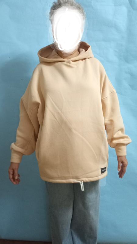 Худи оверсайз из футера -начес цвет беж,очень удобный фасон трапеция по низу кофты шнурок просторные рукава подойдет на любимый размер от XS-S до 52-54размер 🌸тканина тепла -футер 85%хлопок,15% еластана- не скатывает👍👍 🌸🌸🌸🌸🌸🌸🌸🌸🌸🌸 Замеры ПОГ -пвд рукавами82см длина рукава -76см от шеи длина худи 76см ширина по низу 62см 🌸Состояние новое 🥰 👍