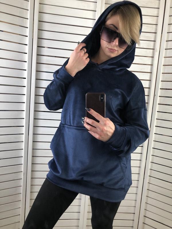 Велюровый худи с капишоном и карманом спереди Ткань: турецкий велюр Размеры М