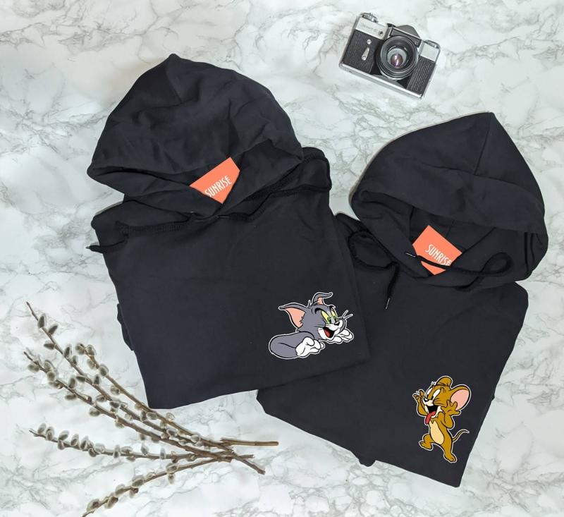 Худи с Томом. Также есть отдельно в продаже худи с Джерри. При покупке комплекта - скидка Ткань - двухнитка Размер L-XL Длина 68см. Плечи 48см Длина рукава от плеча 66см Полуобхват груди 57см
