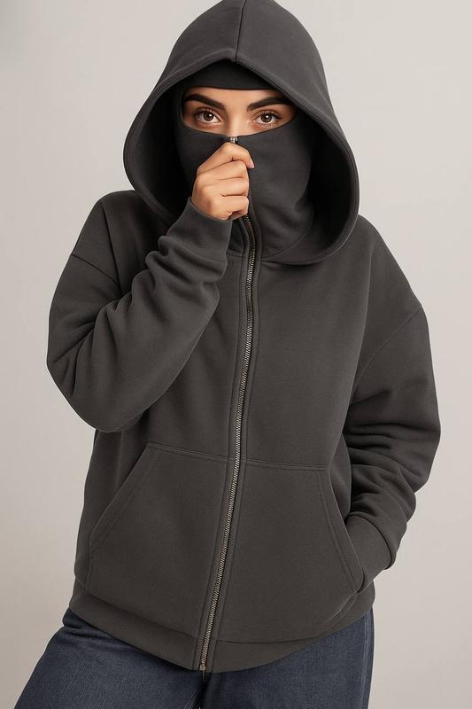 Худи с балаклава Стильная и удобная модель для смелых образов. Мягкая ткань, трехнить на флисе, идеально держит форму. Худи имеет объемный крой, удобную молнию и встроенную балаклава - идеальный вариант для прохладных дней. Модель :033 кра) Размер: 42-46 Кольори: Черный Графит Шоколад