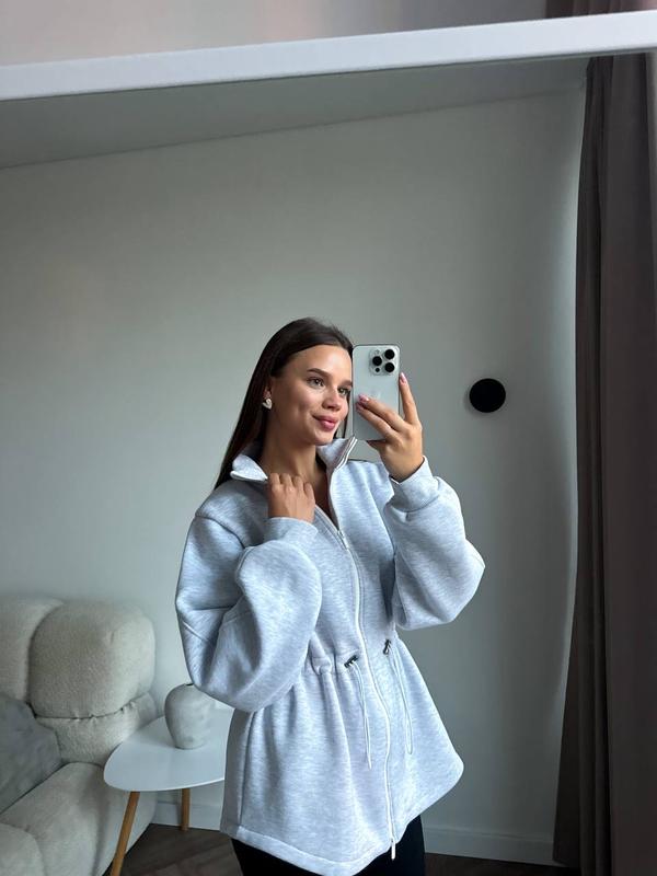 Подовжена кофта на блискавці з кулісками ▪️тканина: тринитка на флісі (Туреччина)+рібана , якість компакт пеньє Тканина не кошлатиться!!! ▪️склад: Бавовна-80%,поліестер-15%,еластан - 5%. ▪️кольори : чорний, шоколад, бордо,меланж ▪️розмір: one size ▪️модель 180
