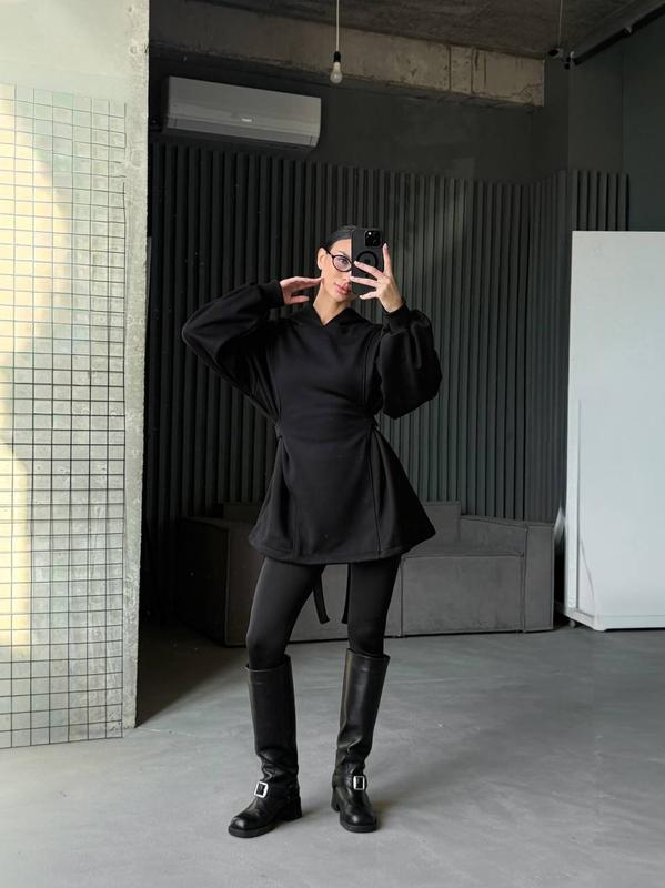 🤍Стильный, удобный и теплый удлиненный худи-платье☺️ еще и в трендовых цветах этого сезона Имеет затяжки на талии, что подчеркнет вашу талию, по желанию можно ослабить и худи будет оверсайз✌🏻 ▫️Тканина: тринитка на ХУТРІ ▫️Размер: SL ▫️Цвет: ЧЕРНЫЙ, шоколад ▪️Мод.: 029