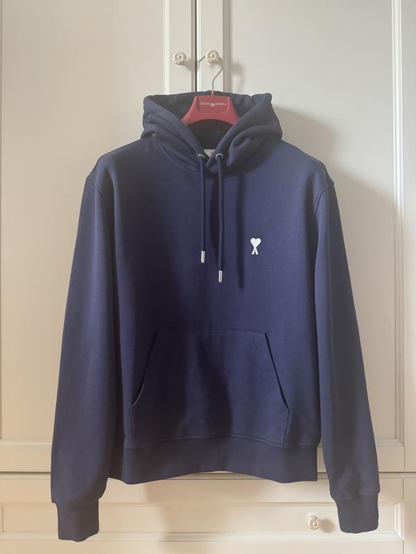 Новое худи Ami Унисекс Цвет темно-синий Размер М , подойдет и на S как оверсайз - Плечи 52 Пог 56 Рукав 67 Длина 66 Ширина внизу 45 + 7/8 см Состав 100 % органический хлопок Цена 210 евро по курсу на день оплаты