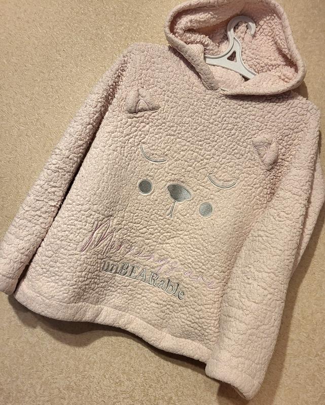 Флиска тедди для дома Бледно розовая , прикольная с вышивкой и аппликацией Есть следы носки Пог 56 тянется до 60 см Длина 60 рукав 3/4