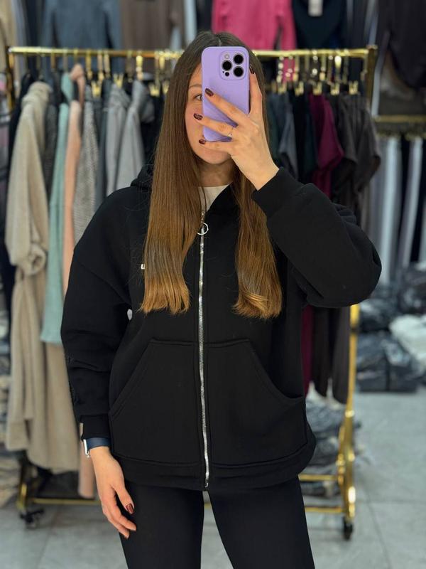 Новинка ❤️❤️❤️ Зипка оверсайз с капюшоном, на молнии. Согреет в холодную погоду. Модель: 4252 Размеры: (42-44),(46-48) Ткань: высококачественная турецкая тренит на флисе Цвета: белый, черный, мокко, шоколад, мята, розовый. Замеры: 📌Обхват груди (42-44)-124см,(46-48)-136см 📌Обхват талии (42-44)-116см,(46-48)-120см 📌Длина (42-44)-64см,(46-48)-68см 📌Рукав (42-44)-71см,(46-48)-74см