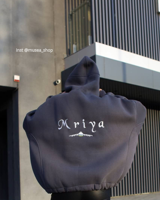 Mriya✈️💔 🔥Такой стильный и уютный худи Mriya полностью вышитая нитками🫶🏽 __Ткань: Дорога Турецкая трехнить «ПИНЬЕ» мягкая, теплая, не кашлатится, не линяет, манжет на рукавах из кашкорсе. __Цвет: белый и графитовый __Размер: one size