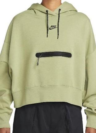 Худі жіноче Nike Sportswear Tech Fleece WomenS Over-Oversized Crop Pullover Hoodie Olive DR4973-334 Оверсайз розмір S може бути на M