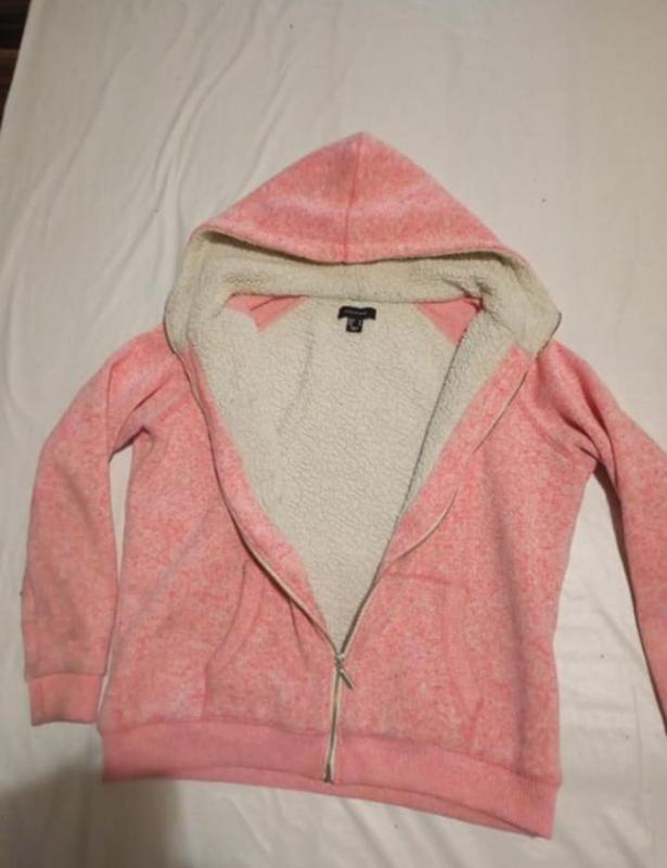 очень теплая кофта на меху на обхват бедер от 110до130 см, рукав от плеча 65 см длина 60 см.стан как новая камера засветляет не нормально.