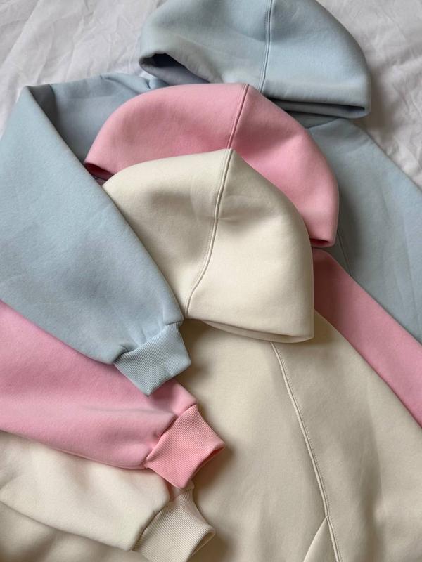 🩷М’якість, у яку хочеться загорнутись Тканина:Турецька трьохнитка піньє(бавовна), манжети кашкорсе Розмір: ніжно-рожевий, блакитний, кремовий Опис: • турецька тринитка преміум якості з манжетами в тон; • подвійний капюшон; • зручні кишені в швах; • кулиска по низу, щоб регулювати об’єм. • трендові відтінки