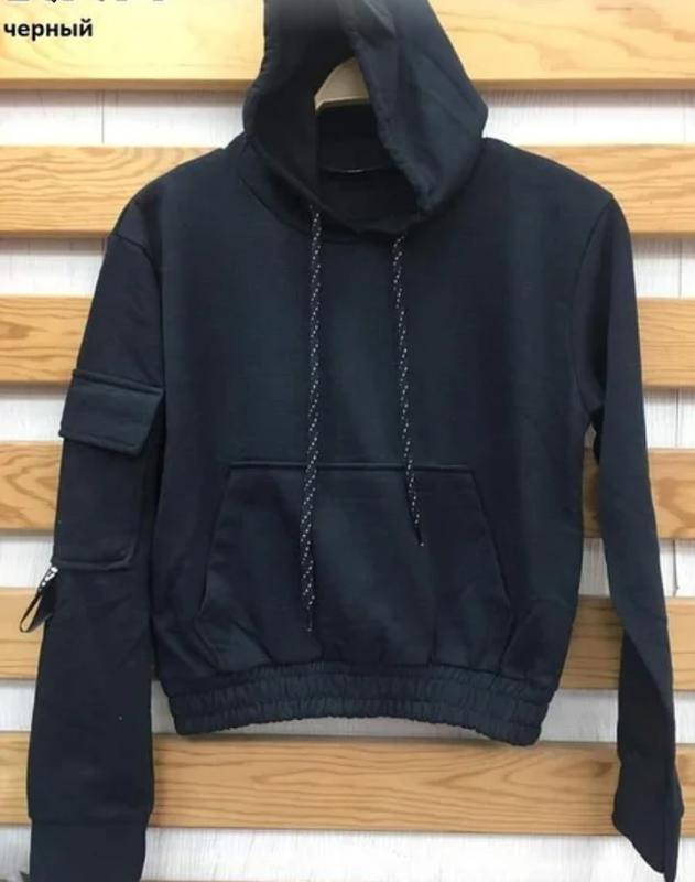 Укороченный утепленный женский худи В черном и красном цвете Материал: двунитка с начесом Очень приятный к телу Размеры: S, M, L